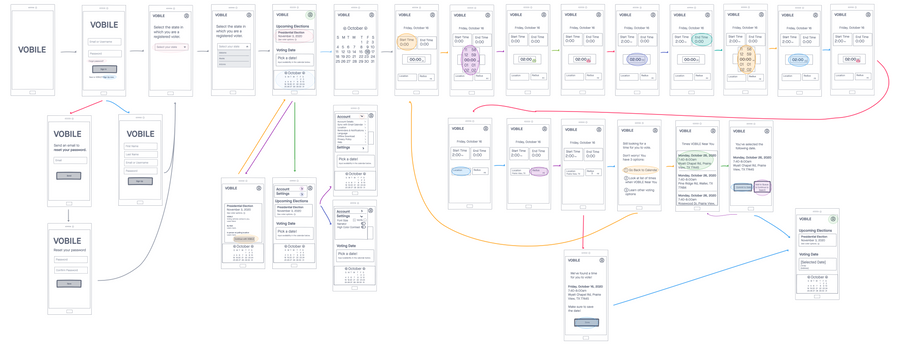 The first prototype below is the full experience of VOBILE starting with a user signing up until they are set with a voting date, time and location. The demo also shows the user inputing their availability for multiple dates and requesting special accommodations.