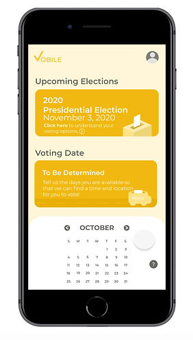 Like a mobile library, VOBILE will deploy a mobile polling station to neighborhoods where minorities live, My application enables voters to be matched with and reserve a voting day, time and location that is convenient for them. The only tool they need is a mobile phone, which is nearly ubiquitous in American households across all socioeconomic levels.