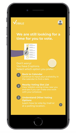 Option 2: View a list of available voting times when VOBILE will be near them. If they think a time might work, they can add it to their queue and continue searching. If the time works, they can commit to the time on the spot.