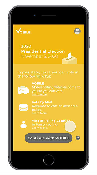 Experiencing voter suppression can make minority voters feel as though their options to exert their right to vote have been limited. With VOBILE, I wanted to create an environment of hope, showing them all of their voting options, with VOBILE being a newly added option. So I added a section breaking down all the ways a user can vote during an upcoming election. From there, users can confidently choose their preferred voter experience.